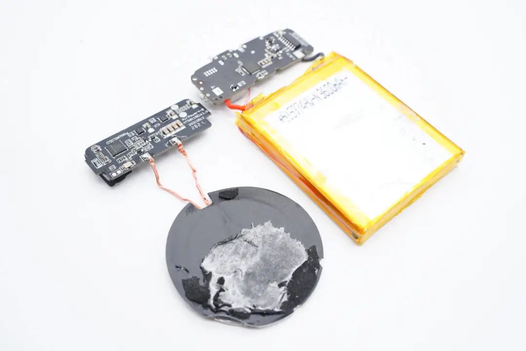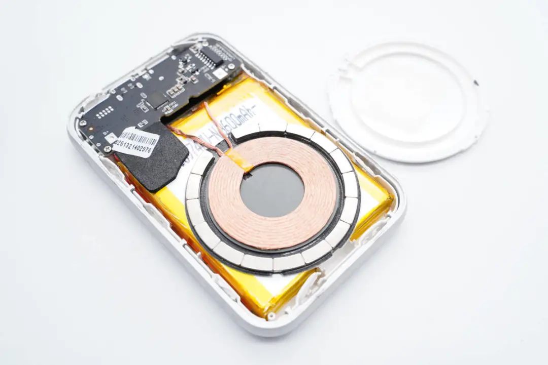 圓形外殼下有磁鐵環(huán)和無線充電線圈。