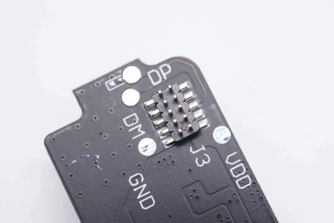 另一塊小板正面設(shè)有電感、接口保護MOS管、鋰電保護芯片等器件。