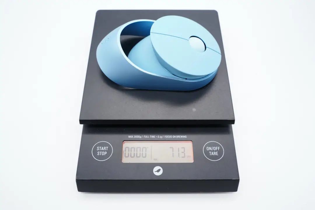 雷柏Ralemo Air 1無線鼠標(biāo)整體小巧,機(jī)身中空造型設(shè)計新穎。頂部圓形塑料殼分半即為左右鍵,表面磨砂處理,球形滾輪位于中心稍微偏下位置。