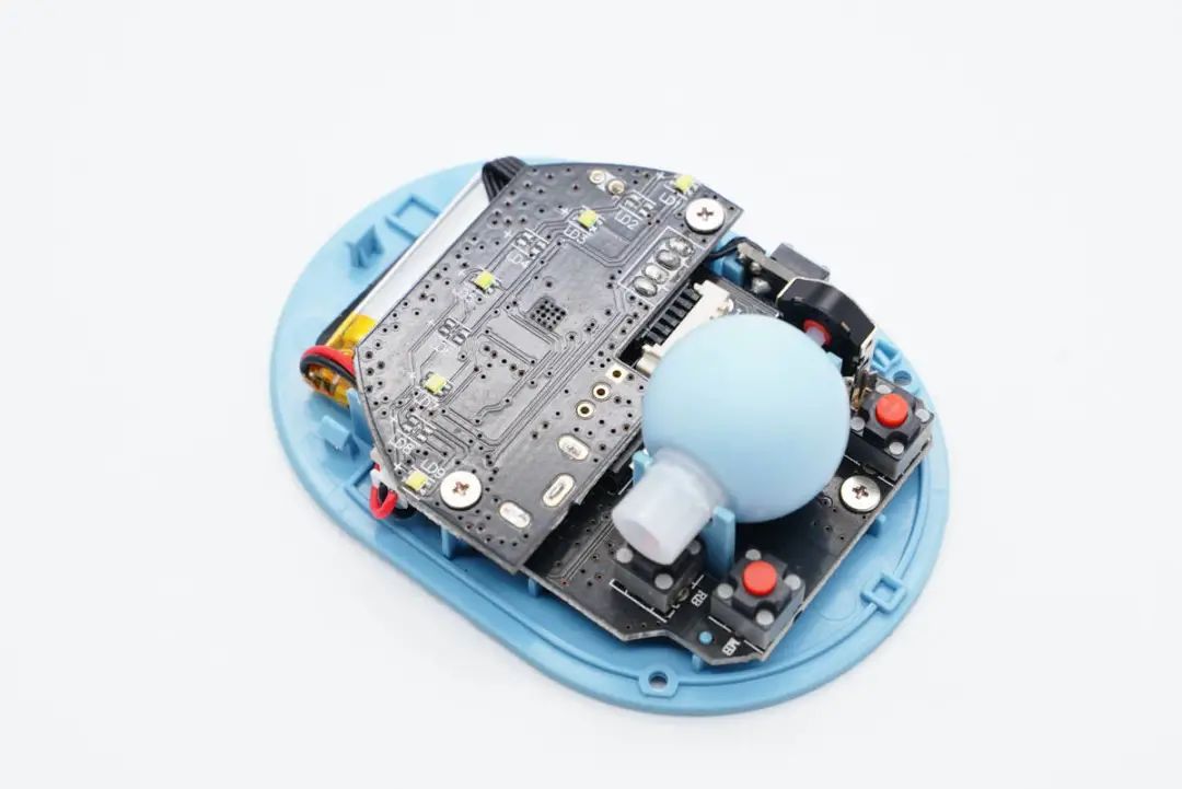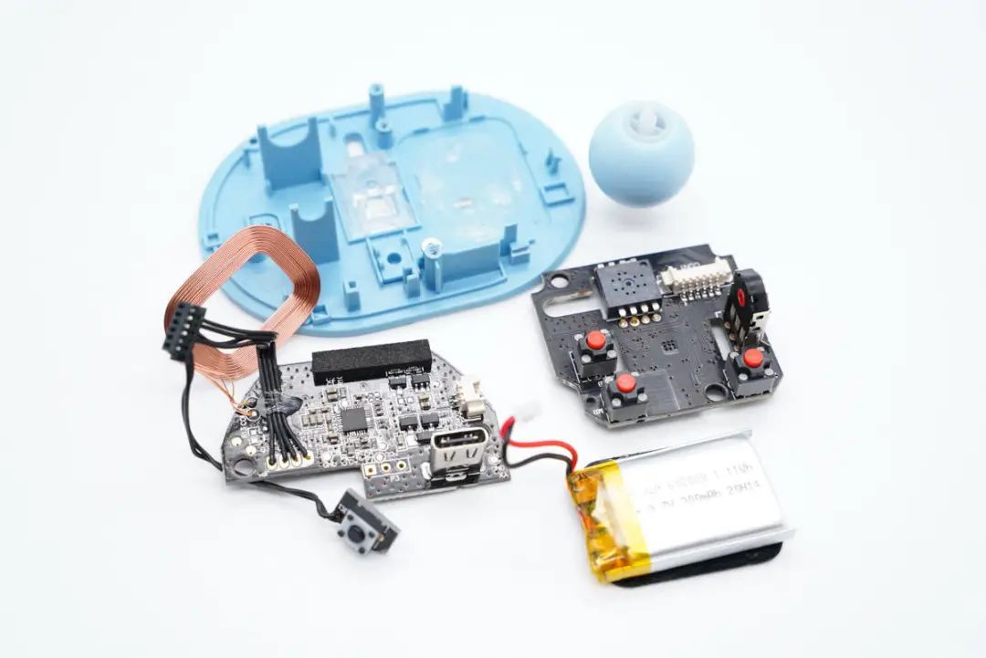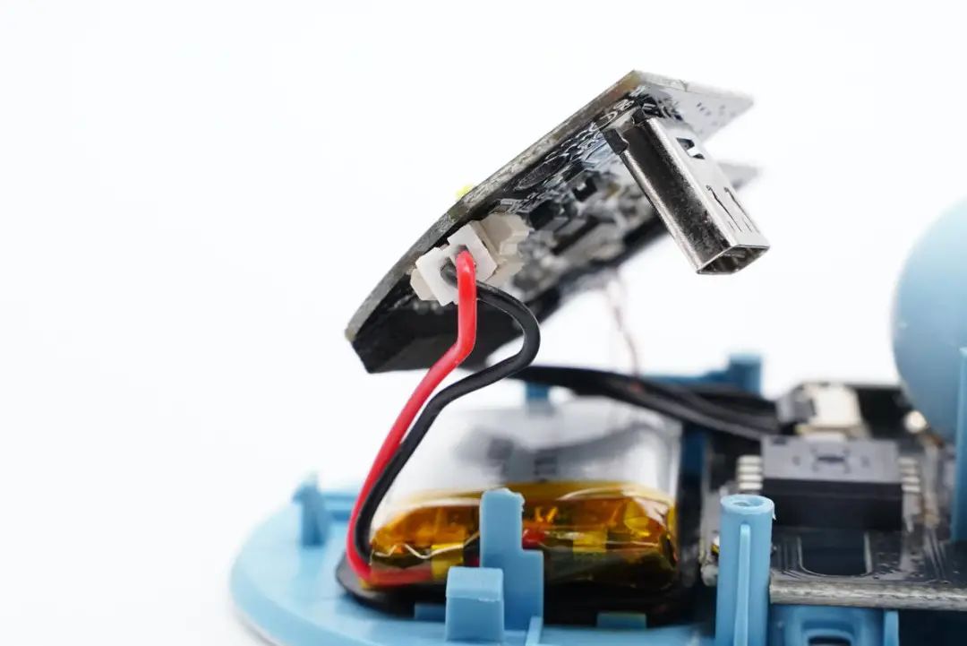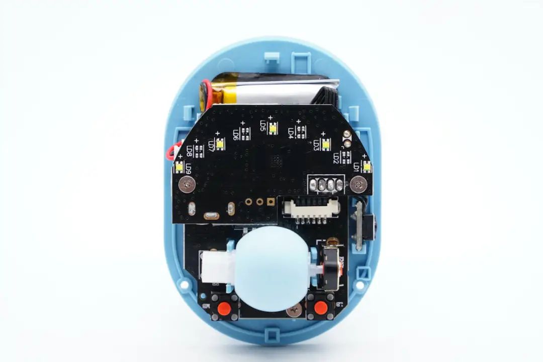 鼠標(biāo)內(nèi)部采用兩塊PCB板連接設(shè)計,PCB板使用螺絲固定。