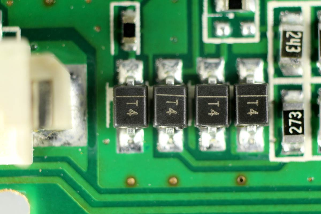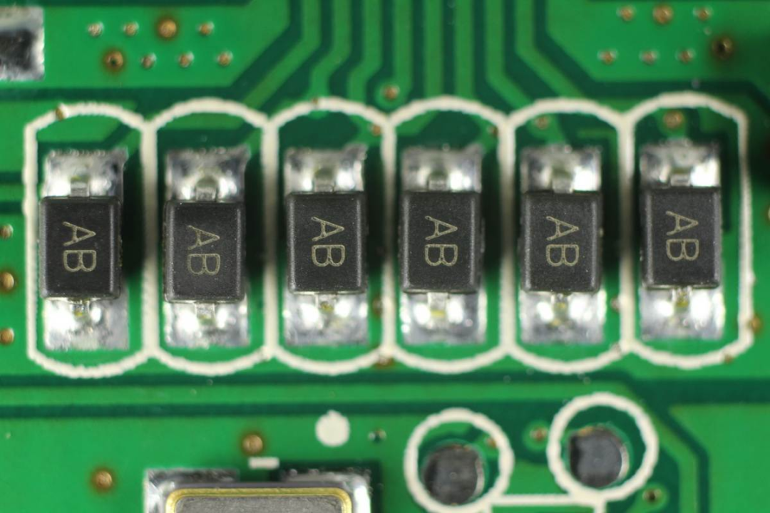 絲印AB的TVS,用于數(shù)據(jù)端口過壓保護(hù)。