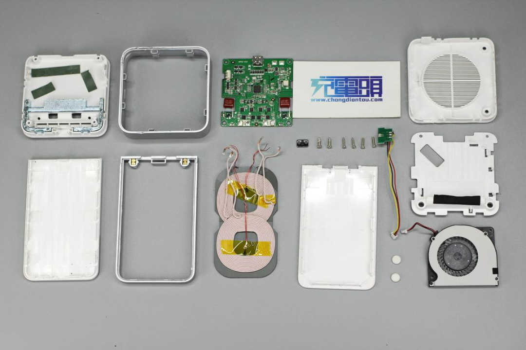 這款無(wú)線充電器內(nèi)置小風(fēng)扇,可在無(wú)線充電過程中進(jìn)行主動(dòng)散熱。此外立式機(jī)身設(shè)計(jì)讓其減少了桌面占地空間并可以作為手機(jī)支架使用,40W無(wú)線充電功率也讓使用體驗(yàn)更上一層樓,很快就能讓手機(jī)滿血復(fù)活。下面充電頭網(wǎng)就對(duì)這款產(chǎn)品進(jìn)行詳細(xì)拆解,看看內(nèi)部設(shè)計(jì)用料如何。