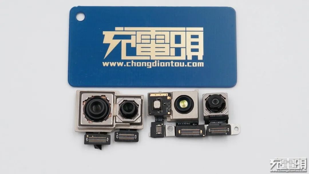 背面上端是6400W四攝全場景影像系統(tǒng),從左往右依次是長焦相機,廣角相機,3D深感探測器和超廣角相機,中間白色圓環(huán)為內(nèi)置閃光燈。