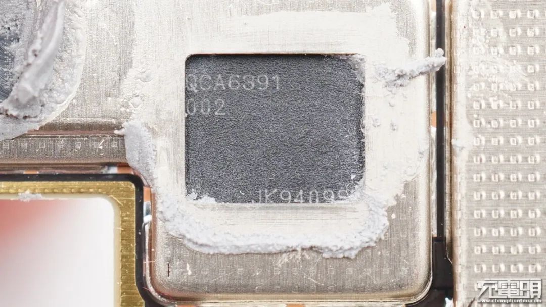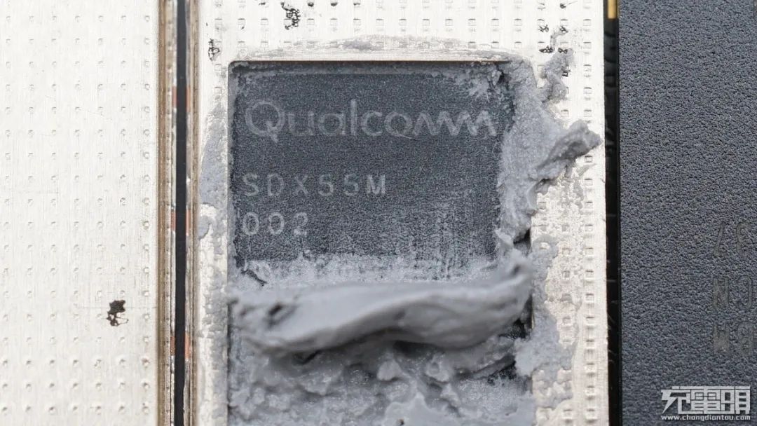 高通 SDX55M,第二代5G調(diào)制解調(diào)器,由導熱硅膠覆蓋散熱。