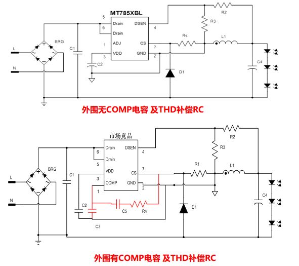 MT7855BL日光燈方案管腳兼容業(yè)內(nèi)同類產(chǎn)品,客戶替代不需要更換PCB,直接去掉COMP電容及補(bǔ)償?shù)腞C即可。