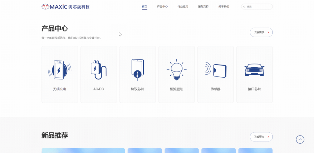 本次升級,我們在首頁保留了“新品推薦”版塊。作為用戶了解美芯晟最新產(chǎn)品的窗口,我們將5個(gè)推薦位保留在了一屏展示,主要新品一目了然,點(diǎn)擊即可一鍵查看詳情。輕交互設(shè)計(jì)讓用戶能快速了解產(chǎn)品信息的同時(shí)也能獲得互動感。