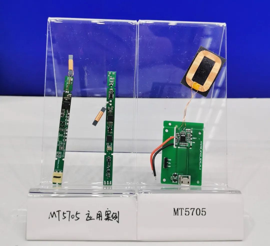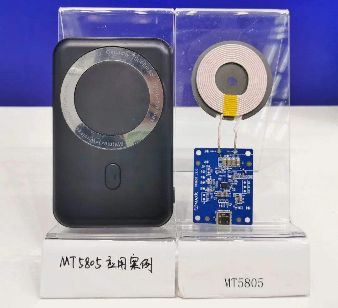 發(fā)射端芯片,為大家?guī)砹?/span>全集成、超低功率、高精度的MT5805,并在現(xiàn)場準備了內(nèi)置MT5805的磁吸充電寶(自啟動應(yīng)用,速度更快,功耗更低),以便廣大客戶可以更加直觀地感受該芯片的實際應(yīng)用效果。