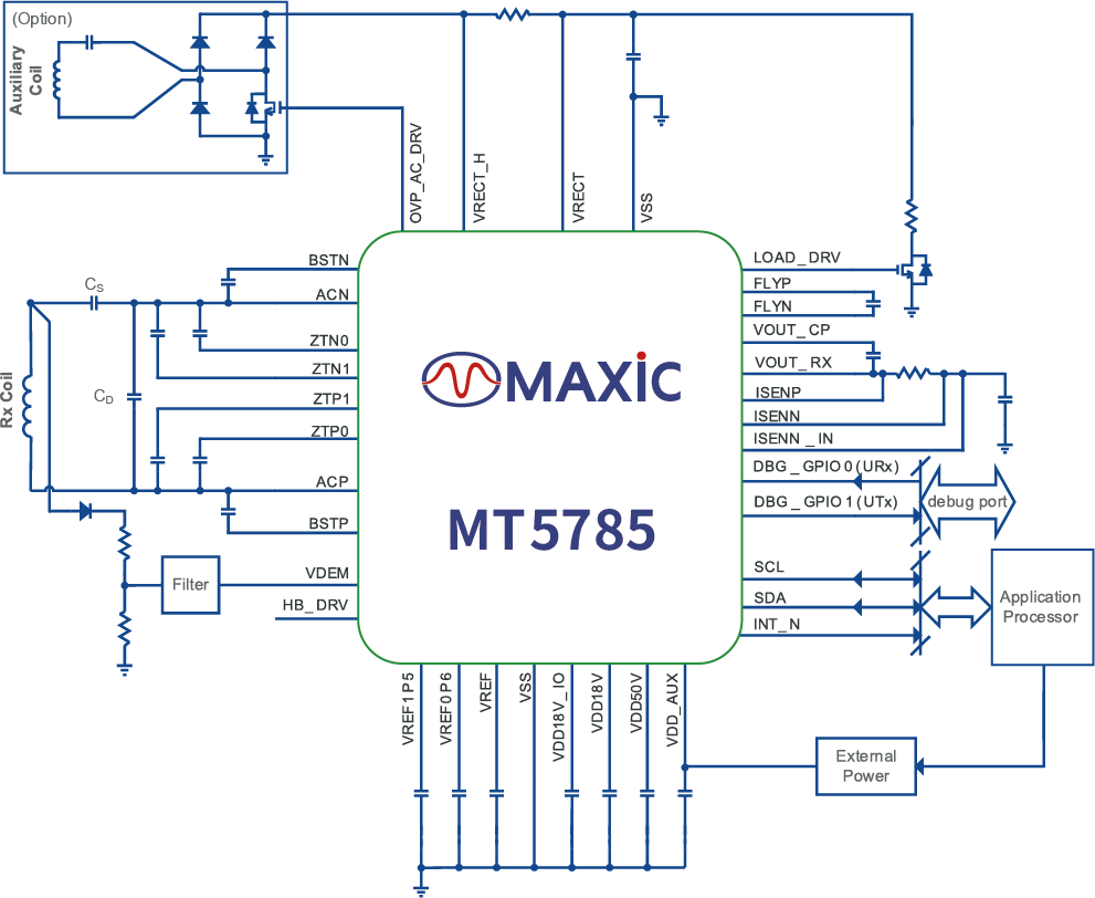 美芯晟最新推出MT5785,是一款基于磁感應(yīng)的SoC高集成無(wú)線(xiàn)充電接收芯片,集成了無(wú)線(xiàn)充電接收功能所需的一切,正向充電功率高達(dá)100W,同時(shí)具有Tx發(fā)射功能,反向充電功率18W。該芯片具有高功率、高性能、高集成度等特點(diǎn),在國(guó)內(nèi)外均屬于高端芯片,已在榮耀Magic 4 Pro/至臻系列等最新推出的旗艦手機(jī)上成功實(shí)現(xiàn)量產(chǎn)。