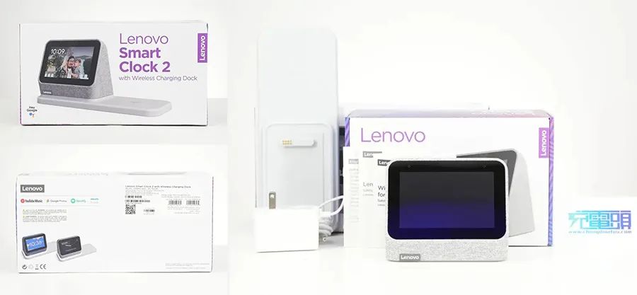 包裝盒正面印有Lenovo品牌、產(chǎn)品英文名稱以及外觀圖;底部印有產(chǎn)品款式外觀圖、支持功能以及型號(hào)等信息;包裝內(nèi)含時(shí)鐘、底座、適配器、說(shuō)明書等。