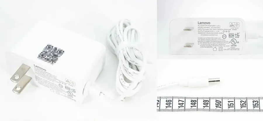 適配器采用PC材質(zhì)白色外殼,配備固定美規(guī)插腳,自帶DC圓頭輸出線纜。輸入端外殼印有適配器參數(shù),型號(hào)為AD18W2002,支持100-240V~50/60Hz 0.8A輸入以及12V1.5A輸出,通過(guò)了NOM、NYCE、UL、PSE認(rèn)證,以及VI級(jí)能效認(rèn)證。測(cè)得適配器輸出線纜長(zhǎng)度約1.5米。
